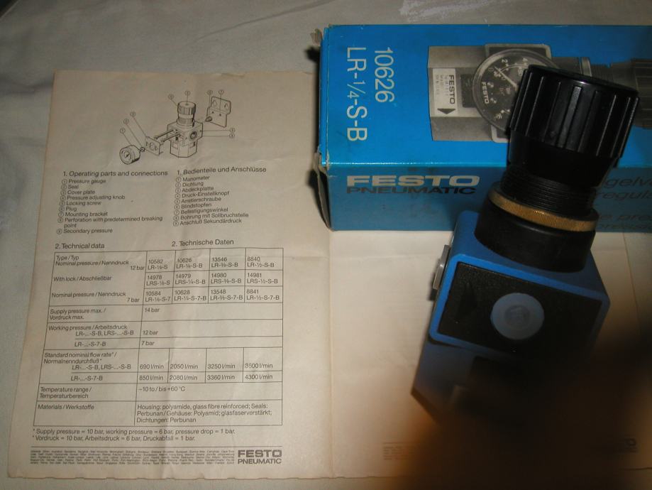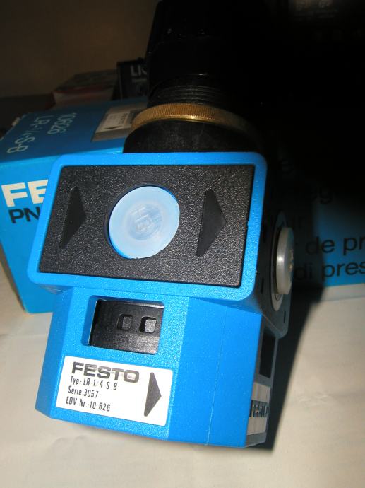 Regulacioni ventil FESTO LR-1/4"-S-B,može biti u sklopu pripremne grupe za zrak ili postavljen zasebno. Ugrađuje se u komandnu ploču