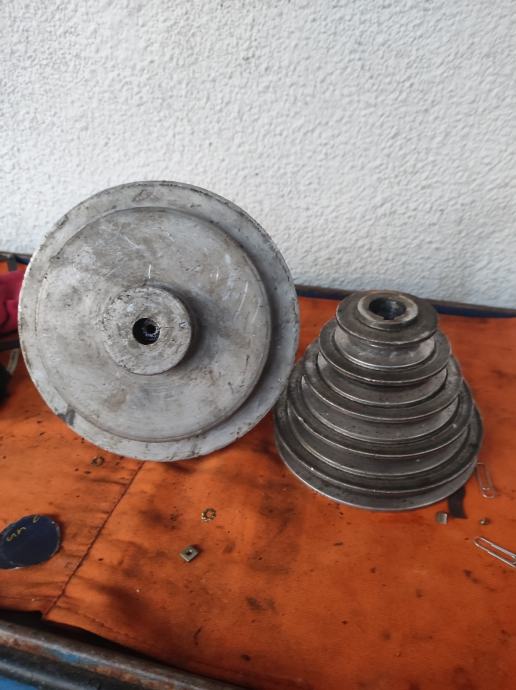 aluminijske remenice, rabljene. Radi se o klasičnim remenicama koje se koriste u raznim strojevima i alatima. U ponudi se nalazi dvoredna remenica sa lagerom te stepenasta (konusna) remenica s više stupnjeva promjera, pogodna za promjenu brzine vrtnje na strojevima poput bušilica ili tokarilica. Mjere na slikama