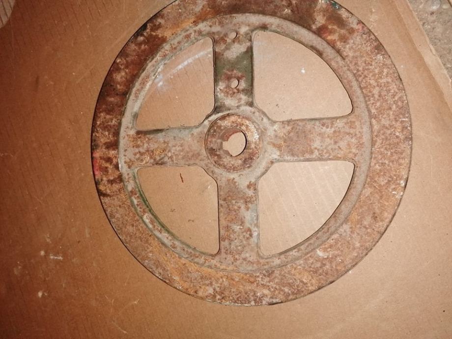Jednoredna metalna remenica za klinasti remen promjera 250 mm, cijena 200 kn.
