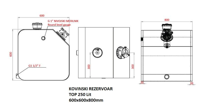 14020 - KOVINSKI REZERVOAR TOP 250 Lit 600x600x800mm