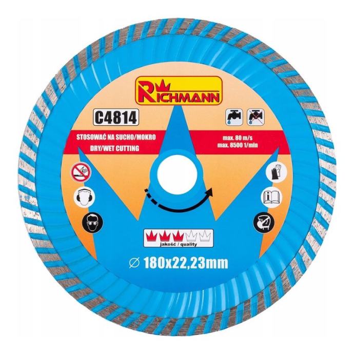 dijamantna oštrica SUPER TURBO dizajnirana je za brzo rezanje materijala kao što su: očvrsli beton, cigla, granit, zid, kamen, pješčenjaknamijenjen rezanju materijala pomoću kutne brusilice od 180 mmpromjer diska je 180 mm, debljina 3,0 mm, provrt 22,23 mm, dijamantna površina 10 mmspecifičan profil dijamantnog ruba omogućuje rezanje najtvrđih materijala velikom brzinom bez ugrožavanja kvalitete završne obradeza suho i mokro rezanje]]>