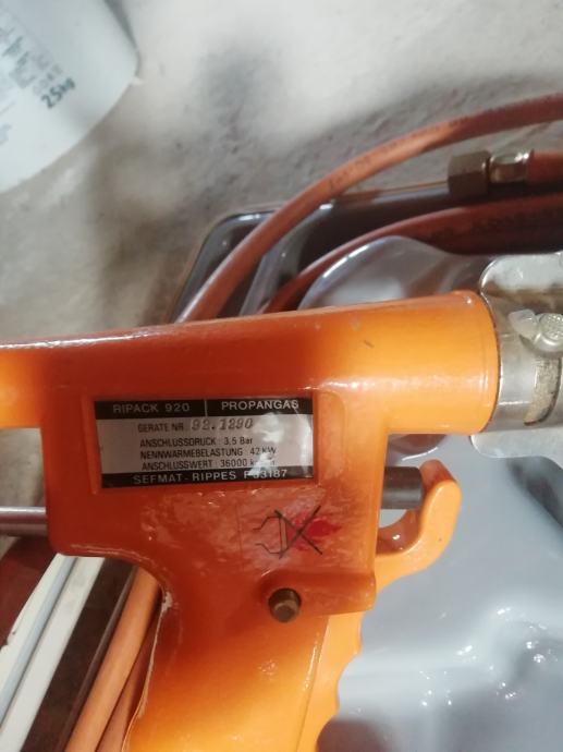 Ripack 920 plinski pištolj za pakiranje, očuvan i u jako dobrom stanju. Dolazi skupa s koferom, crijevom i ostalom opremom.