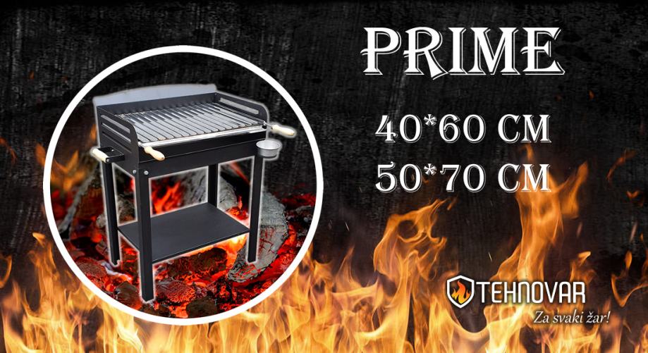 Roštilj PRIME je elegantan model roštilja standardnih dimenzija površine za pečenje 60x40 cm.Model PRIME nudi 3 visine pečenja na sistem „ladica“, sistem izvlačenja i dizanja u 3 visine za pečenje.Standardni model rešetke roštilja sa INOX prečkama debljine 1,5 mm - sa okvirom debljine 5 mm i drvenim ručkama sa prednje strane. Ekstra čvrsto željezno ložište PRIME debljine 2 mm kompletno vareno TIG-om sa laserski rezanim elementima, garantira vrhunsku kvalitetu korištenja.Kod ovog modela, 4 noge su duljine 60 cm rasklopive vijcima što je vrlo pogodno za skladištenje. Visina ložišta je fiksna. Gornja visina za loženje je 78 cm!Zaštita protiv korozije toplostalnim lakom crne boje.