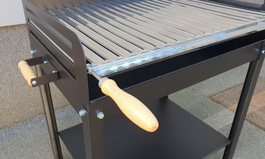 Rešetka roštilja:INOX prečke 1,5 mmOkvir 5 mmRučke sa prednje strane – drvene