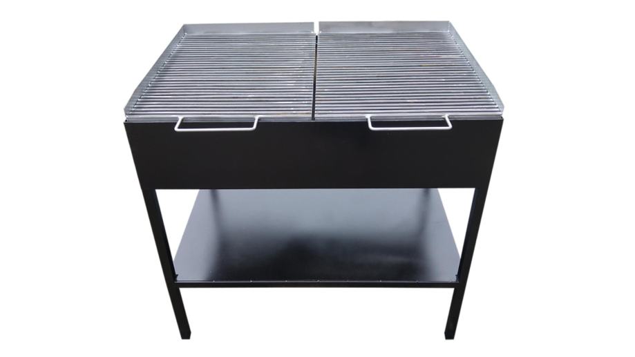 Rešetke: 2 rešetke od željezne šipke 8x8 mm – razmak 8 mm, 3 okomite šipke 12x12 mm koje povezuju rešetke, kompletno varene sa obje strane. Zavareni panti na stražnjoj strani za kipanje, željezne ručke sa prednje strane za podizanje, zavaren okvir oko roštilja protiv ispadanja mesa, visina okvira 4 cm!
