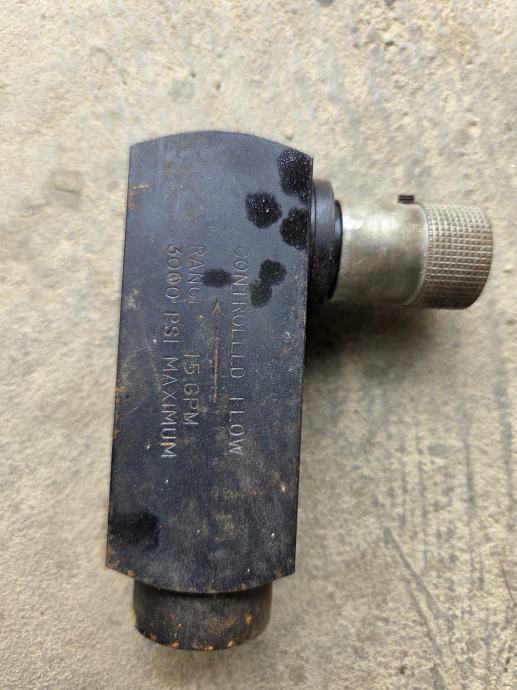 Prodajem rabljeni ručni regulator hidrauličkog tlaka. Radi se o regulatoru kontroliranog protoka s maksimalnim radnim tlakom od 5000 PSI i rasponom protoka do 15 GPM. Kompaktne izvedbe s ručnim kotačićem za podešavanje.