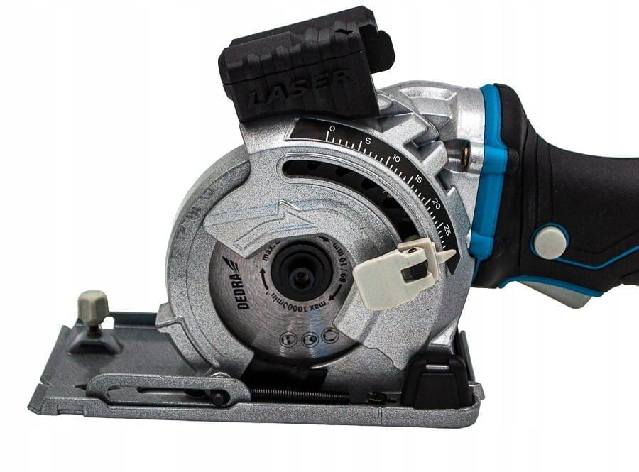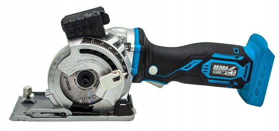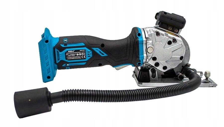 Motor pile dostiže brzinu od 2950 o / min i radi s 89 mm diskovima s rupom od 10 mm. Uređaj je opremljen nogom i vodičem, zahvaljujući koje možemo postići paralelni rez. Upravljanje reznom linijom također je podržano laserskim indeksnim prstom smještenim na gornjem dijelu tijela. Ergonomski oblik ručke ne gurne ruke, a gumirani elementi značajno poboljšavaju udobnost upotrebe i poboljšavaju sigurnost na poslu. Zahvaljujući maloj težini, uređaj je vrlo mobilni i izuzetno ljubazan prema korisniku. Kućište je napravljeno od najlona s dodacima od stakloplastike, što povećava otpornost na mehanička oštećenja i UV zračenje.