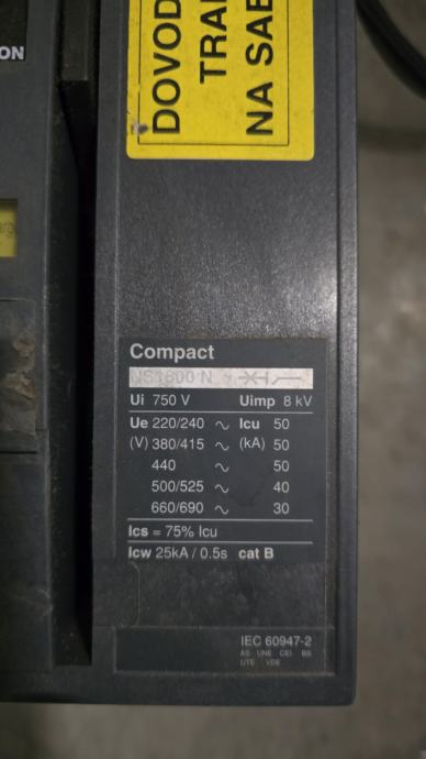 Prodajem Schneider Electric Compact NS1600N automatski prekidač (Aptomat) s Micrologic regulacijom.