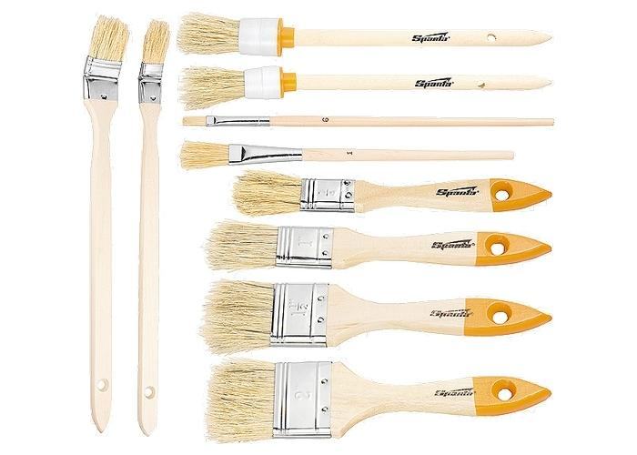 Postavite četke ravne, okrugle i radijatore Sparta 841155, 10 kom ih je za slikanje, uključujući uljne boje. Prirodne čekinje su optimalne za primjenu formulacija na bazi otapala. Oni pružaju stalni zaključak. Prednosti čekinje sigurno drže metalna traka koja je tretirana antikorrozijskom prevlakom za otpornost na hrđe.