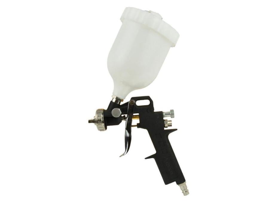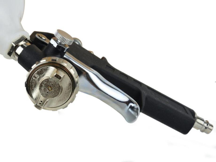 Pištolj od 3 - 5 bara i potrošnja zraka 130 - 300 litara u minuti omogućuje profesionalnu primjenu boja i laka. Pištolj za raspršivanje koristi tlak zraka za prskanje boje kako bi stvorio stalni premaz, dok njegov aluminijski spremnik i stoga se može očistiti bez puno napora.