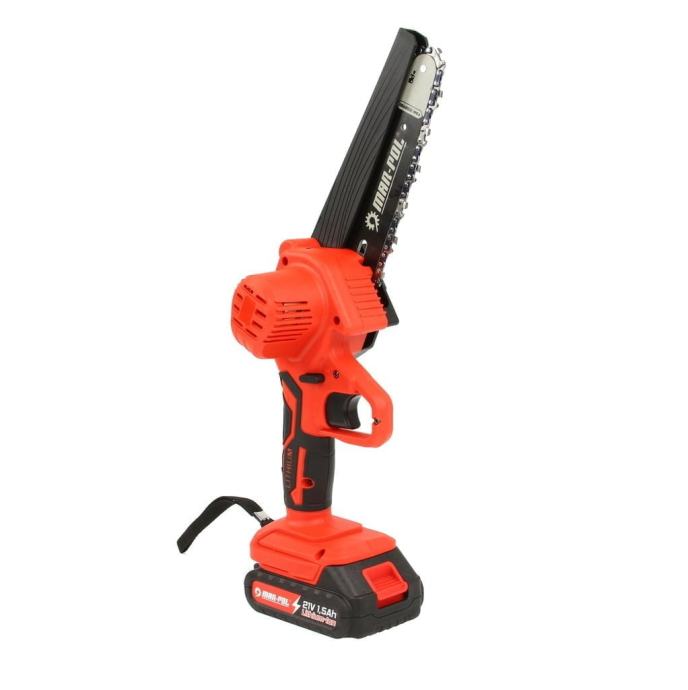 Predstavljamo našu moćnu bateriju s duljinom mača od 15 cm i dvije baterije od 1,5 AH. Ova kompaktna i lagana lančana pila idealna je za obrezivanje stabala, rezanje drva za ogrjev i ostale manje radne radove u okolini. Snažan 21V motor pruža učinkovit rad, dok napajanje baterije omogućuje slobodu kretanja bez potrebe za električnim kabelom.