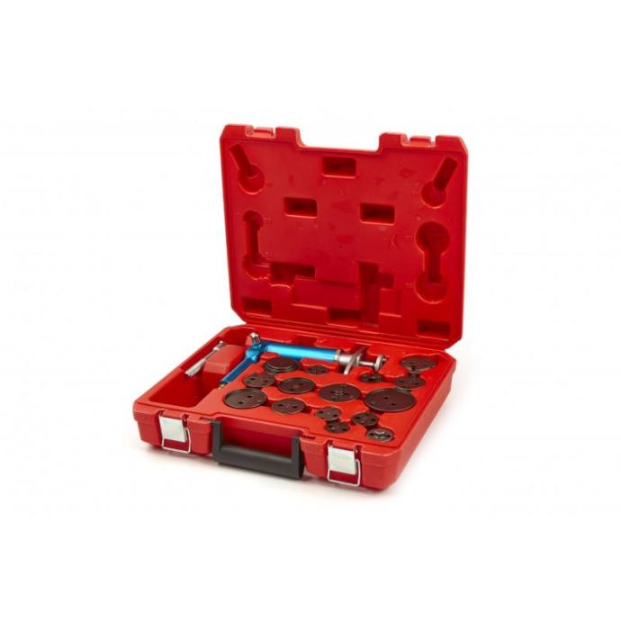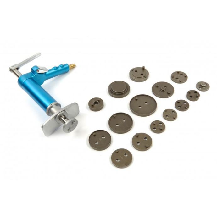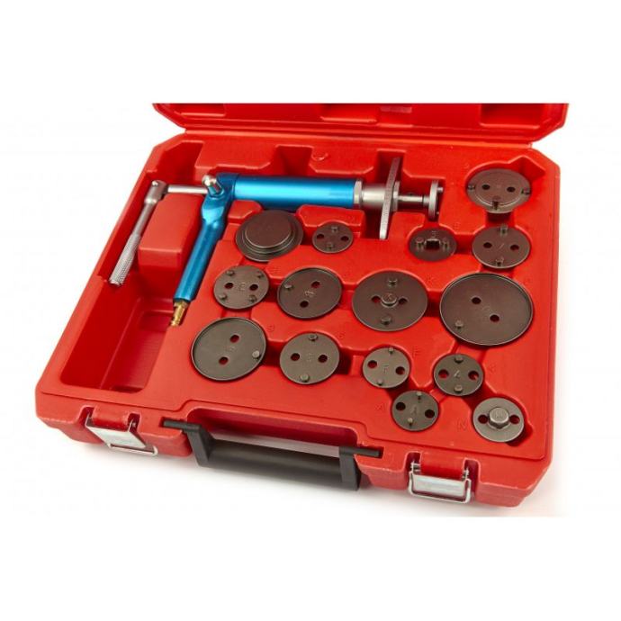 s ovim setom možete sami sigurno zamijeniti kočione pločice vašeg automobilaza postavljanje novih pločica potrebno je resetirati zaglavljene kočione klipoves ovim opsežnim setom moguće je istovremeno napraviti rotirajući pokret uz istovremeno vršenje pritiska na kočioni klipkorištenje ovog profesionalnog seta također sprječava oštećenje gumenih brtvi i zaštitnih čepovasa svim uobičajenim adapterimaza desno i lijevo okretanjeisporučuje se s 15 adaptera pogodnih za: Audi, Bmw, Citroën, Ford, Fiat, Honda, Jaguar, Mercedes, Nissan, Renault, Saab, Toyota, Volvo i VW]]>