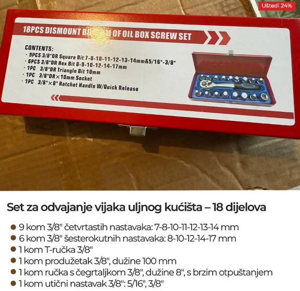 Ovaj set je pouzdan alat za svakodnevnu upotrebu pri izmjeni ulja, prilagođen profesionalcima i hobistima koji traže kvalitetu, funkcionalnost i dugotrajnost u jednom rješenju.