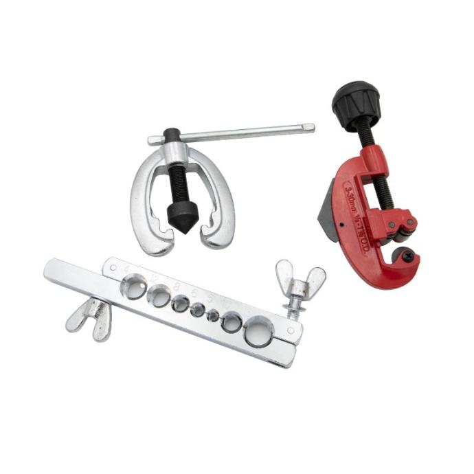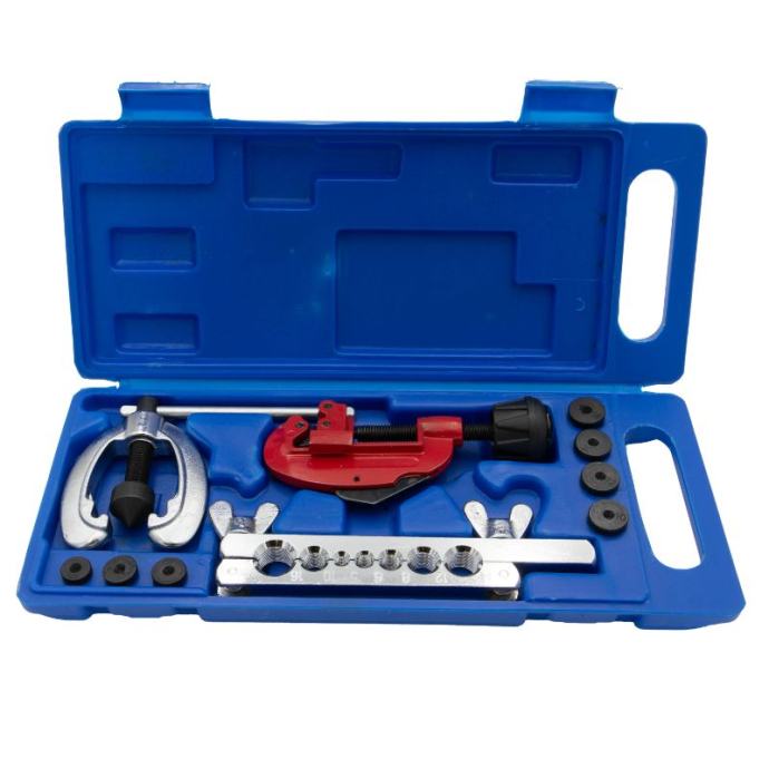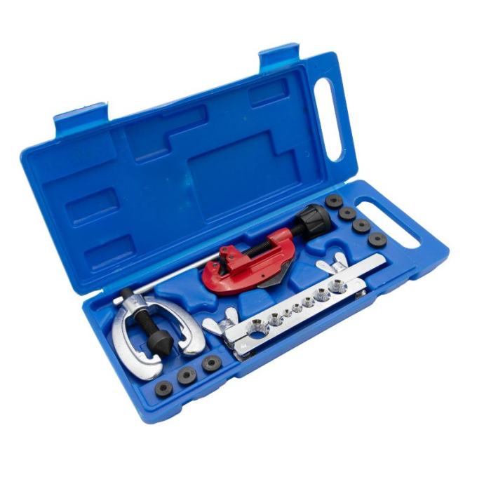 1 rezač cijevi: 1/8" (3 mm) - 1-1/8" (30 mm)1 presa za flaring1 šipka za širenje: 5, 6, 8, 10, 12, 14, 16 mm u promjeru7 proširenih adaptera: 5, 6, 8, 10, 12, 14, 16Za cijevi od tvrdog ili mekog bakra, aluminija, mesinga, čelika tankih stijenki, nehrđajućeg čelika, titana i drugih cijevi.]]>