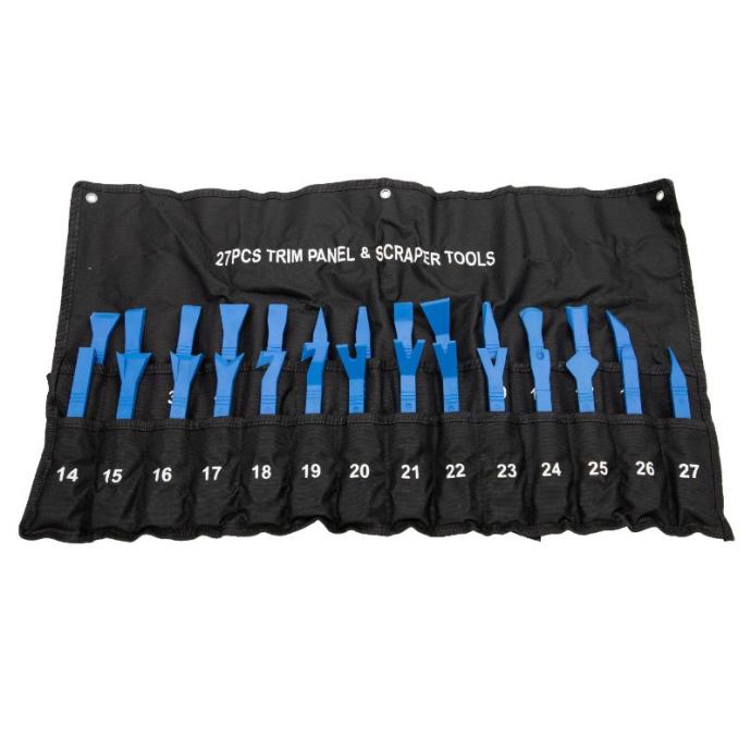 Komplet za skidanje panela i obloga od 27 dijelova svestrani je komplet alata idealan za rastavljanje unutarnjih komponenti vozila kao što su ploče s instrumentima, ventilacijski otvori, ploče vrata, brave na vratima, elektroničke kontrole sjedala i još mnogo toga.Set sadrži najčešće korištene alate, koji su različitih veličina i oblika, tako da posao možete obaviti učinkovito u svakoj situaciji. Alati su izrađeni od visokokvalitetne plastike koja sprječava ogrebotine i oštećenja površina.S ovim kompletom možete lako i sigurno ukloniti unutarnje elemente bez njihovog oštećenja. Bilo da se radi o instalaciji, održavanju ili preinaci, ovi alati pomoći će vam u preciznom i nježnom rastavljanju.Komplet za skidanje ploča i presvlaka od 27 dijelova savršen je izbor i za profesionalce i za hobiste. Svestrani alati omogućuju vam da lako dosegnete teško dostupna mjesta do kojih bi bilo teško doći drugim alatima.]]>