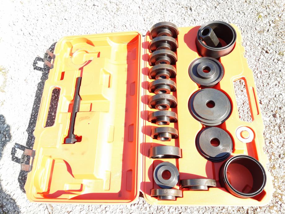 Prodajem novi komplet alata u koferu za lako i brzo odvajanje ležajeva kotača i simen blokova bez hidraulične preše. Ručna mehanička preša za ležajeve i sl., izvlakač. Izvlakači su novi i ne korišteni. Za zamjenu zglobova i kugla ramena i vilica mercedes Renault i sl. selen blokova mosta i slično. Zamjena direktno na autu skraćuje vrijeme popravka.