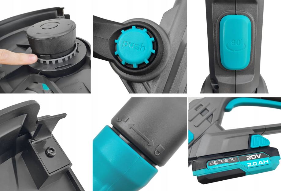 Komad ima automatsku glavu navoja prilagođenu za korištenje nita za rezanje debljine 1,6 mm.
