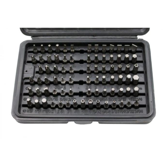 (x3) bitovi spojke 1, 2, 3 mm(x3) bitovi Torq-set 6, 8, 10 mm(x3) bitovi XZN M5, M6 E M8(x4) bitovi Triwing 1,2,3,4,mm(x4) bitovi Robertson 0,1,2,3mm(x4) bitovi Ključ 4, 6, 8,10 mm(x9) bitovi Fenda 3, 4, 4, 5, 5.5, 6.6, 5.7, 7, 8 mm(x8) bitovi Philips PH0, PH1, PH2(X5), PH3(x8) bitovi Pozidriv PZO, PZ1, PZ2(X5), PZ3(x9) nastavci šesterokutni 1,5, 2, 2,5, 3, 4, 5, 5,5, 6, 8 mm(x10) heksagonalni metrički bitovi 1/16, 5/64, 3/32, 7/64, 1/8, 9/64, 5/32, 3/16, 7/32, 1/4”(x6) nasadni šesterokutni bitovi 2, 2,5, 3, 4, 5, 6 mm(x6) nasadni metrički bitovi 5/32, 9/64, 1/8, 7/64, 3/32, 5/64”(x9) bitovi torx T8,10,15, 20, 25, 27, 30, 40, 45(x9) Torx nastavci T8H, 10H, 15H, 20H, 25H, 27H, 30H, 35H, 40H(x1) Hook Driver bit(x1) adaptador bits roquete 1/4” 25 mm(x1) adaptador sextavado curto 1/4” 25 mm(x1) bit adapter 1/4” 50 mm(x1) adapter utičnice 1/4” 60 mm]]>