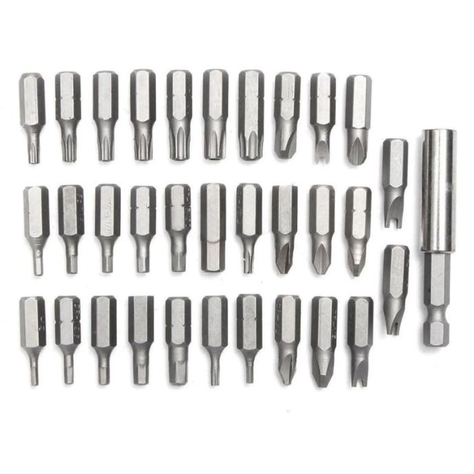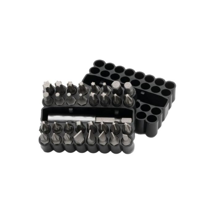 Može se opremiti električnim odvijačima, ručnim odvijačima, električnim bušilicama i drugim alatima. Izrađen od CR-V, tako da je super tvrd, daje veliki okretni moment i dug životni vijek. Mogu se pohraniti u gornju ili donju plastičnu kutiju. Nudi različita rješenja. Jednostavan za korištenje i nošenje. Visoka razina ugriza smanjuje oštećenje glave vijka. Glava odvijača je magnetska.Sadržaj:Otporan na torx: T8, T10, T15, T20, T25, T27, T30, T35, T40Ključ: 4 mm, 6 mm, 8 mm, 10 mmTorx bitovi: 6 mm, 8 mm, 10 mmTrokrilni nastavci: 1 mm, 2 mm, 3 mm, 4 mmImperial zaštićeni šesterokutni nastavci: 5/64", 3/32", 7/64", 1/8", 9/64", 5/32"Metrički šesterokutni nastavci zaštićeni od neovlaštenog otvaranja: 2 mm, 2,5 mm, 3 mm, 4 mm, 5 mm, 6 mm1 imbus ključ promjera 1/4".Kutija za pohranu]]>