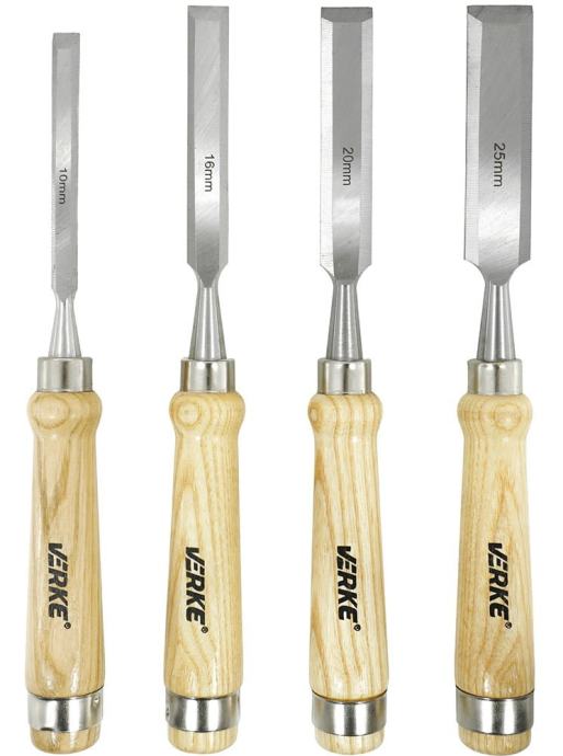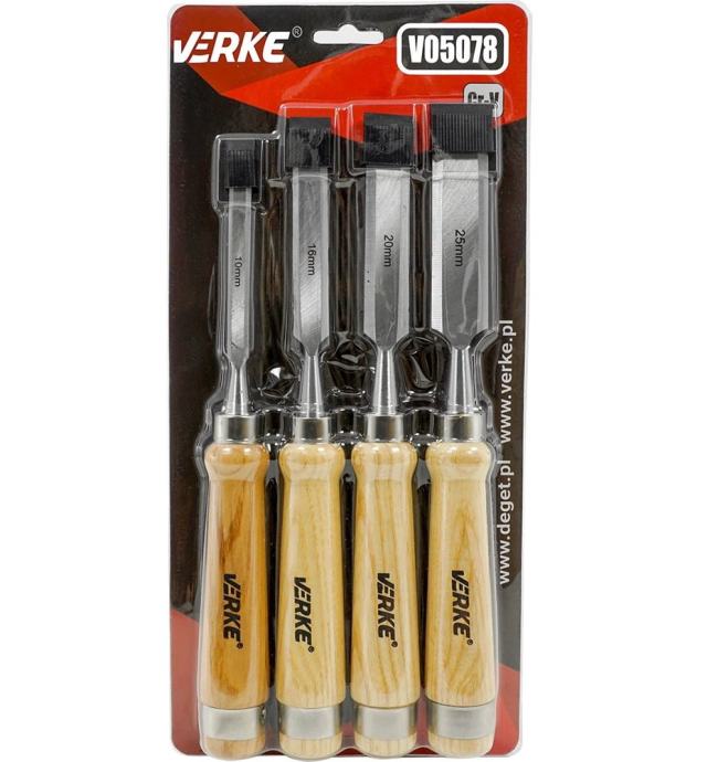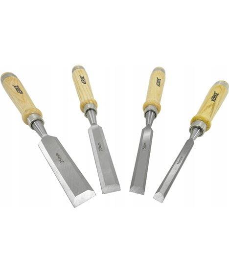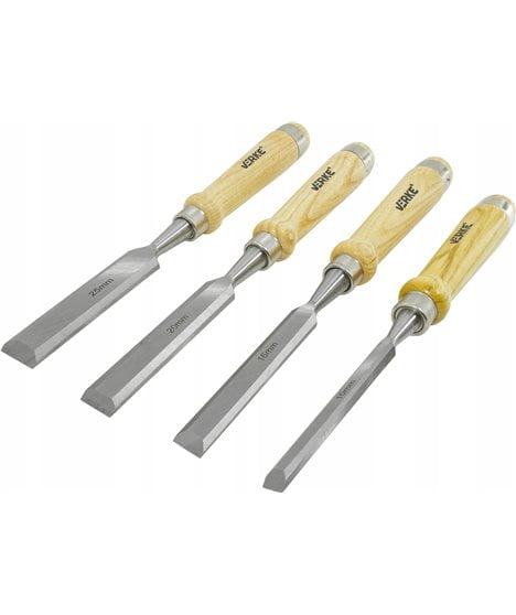 Set drvnih dlijeta koji se sastoje od 4 komada. Dlijekovi su opremljeni udobnim drvenim ručkama koje pružaju udobnost na poslu i olakšavaju rukovanje alatima. Osim toga, osovina ima metalni prsten koji sprečava da se ručka prebrzo razbija.