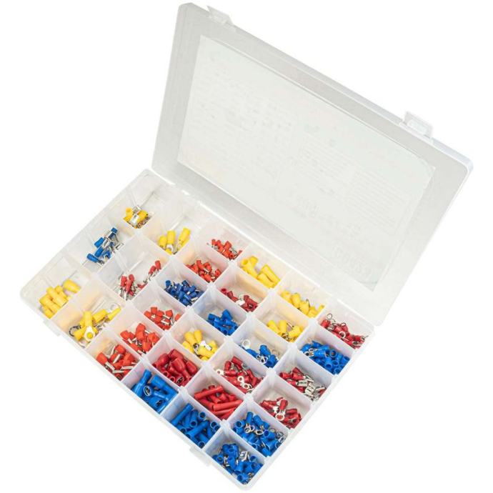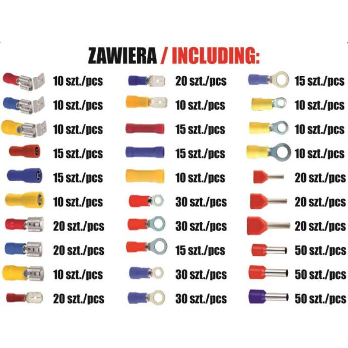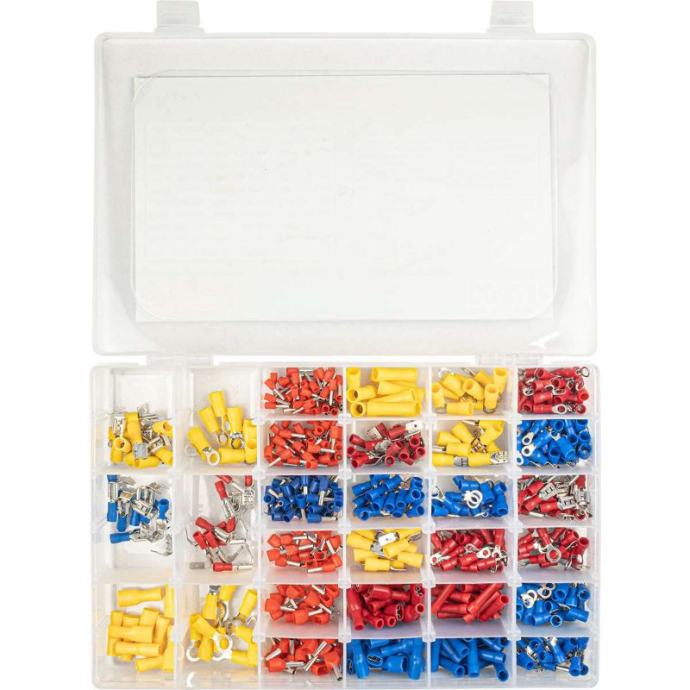 set izoliranih električnih stezaljki i konektora 600 komset se nalazi u kaseti zatvorenoj kopčama i ušicom za kačenje na kukusvaka veličina ima zaseban odjeljak u rasutom pakiranju kako bi se spriječilo miješanje tijekom transportaset sadrži sve najčešće korištene električne stezaljke i konektore, izolirane, označene bojama ovisno o namjeniTehnički podaci:vrsta: Izolirane električne stezaljke i konektoriveličina: mješovitabroj komada u setu [kom] - 600dimenzije paketa [mm]: 275x180x42težina [g]: 475]]>