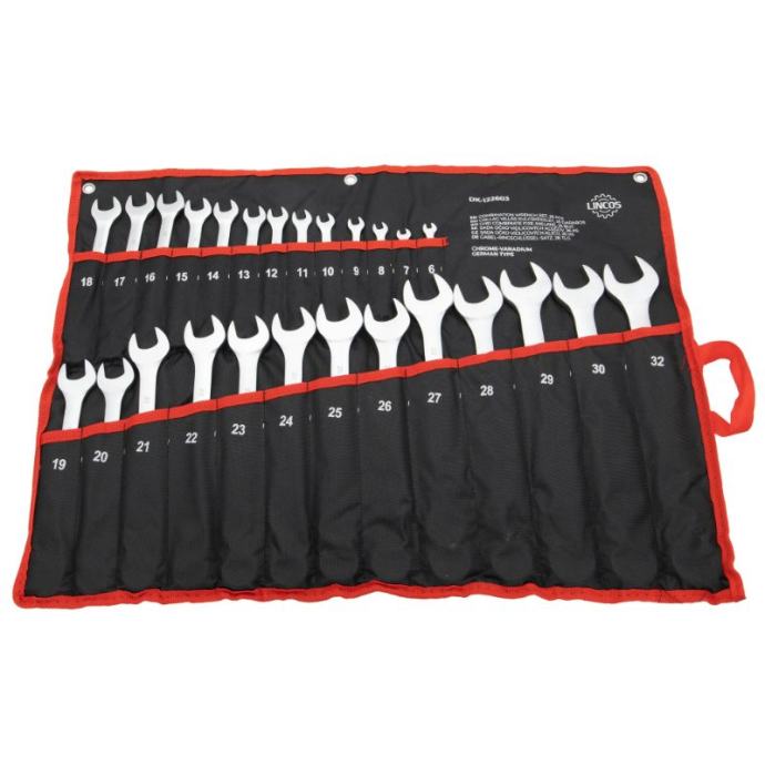 Ovaj 26-dijelni set kombiniranih ključeva, pomno dizajniran da zadovolji stroge njemačke standarde DIN3113. Izrađen od visokokvalitetnog krom vanadija, materijala poznatog po iznimnoj čvrstoći i izdržljivosti.Svaki ključ u setu pažljivo je dimenzioniran od 6 mm do 32 mm, što osigurava da imate savršen alat za svaki zadatak. Bilo da zatežete male vijke ili se bavite većim industrijskim projektima, ovaj opsežni set pokriva sve vaše potrebe s veličinama uključujući 6, 7, 8, 9, 10, 11, 12, 13, 14, 15, 16, 17, 18, 19, 20, 21, 22, 23, 24, 25, 26, 27, 28, 30 i 32 mm.Tehnički podaciMaterijal: krom vanadijNjemački standard DIN3113Veličine: 6, 7, 8, 9, 10, 11, 12, 13, 14, 15, 16, 17, 18, 19, 20, 21, 22, 23, 24, 25, 26, 27, 28, 30, 32 mmIdealan i za profesionalne mehaničare i za entuzijaste "uradi sam", ovaj njemački standardni set ključeva nezamjenjiv je dodatak svakom alatu. Njegov sveobuhvatan raspon veličina i vrhunska kvaliteta jamče da ste dobro opremljeni za obavljanje bilo kojeg posla s povjerenjem i preciznošću. Doživite spoj njemačkog inženjerstva i iznimne kvalitete materijala uz naš 26-dijelni set kombiniranih ključeva.]]>