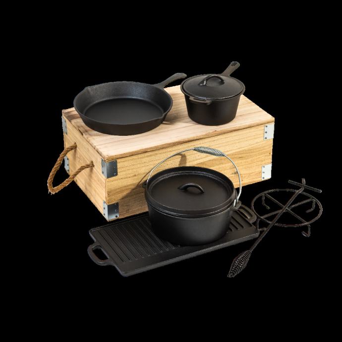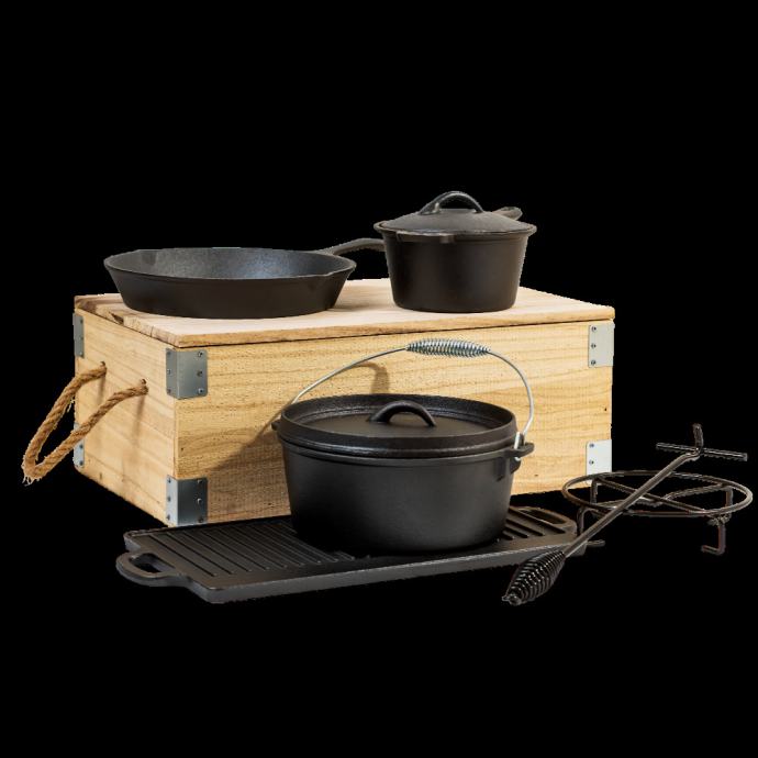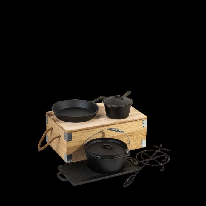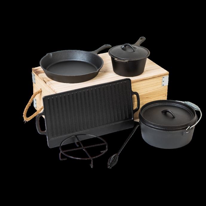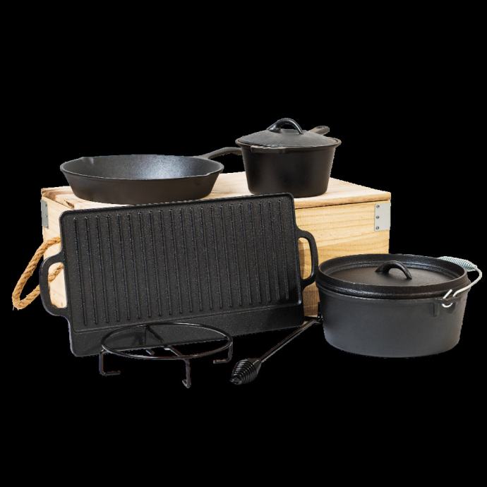 Set od lijevanog željeza osigurava ravnomjernu raspodjelu i zadržavanje topline. Za korištenje u kamadu, ali i neovisno o njemu.