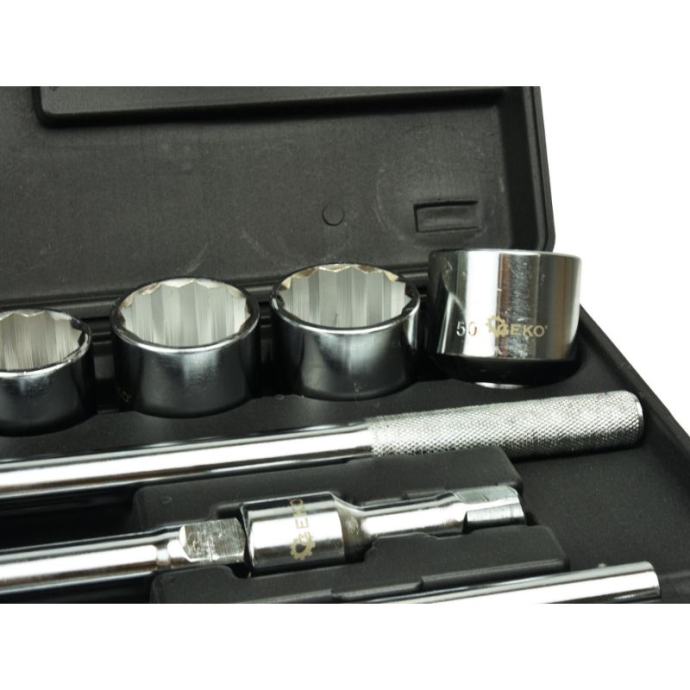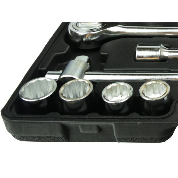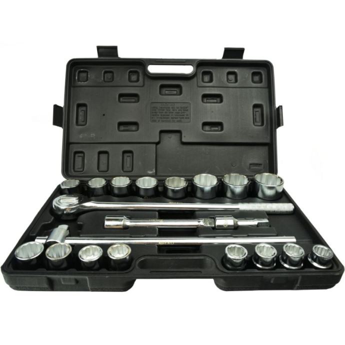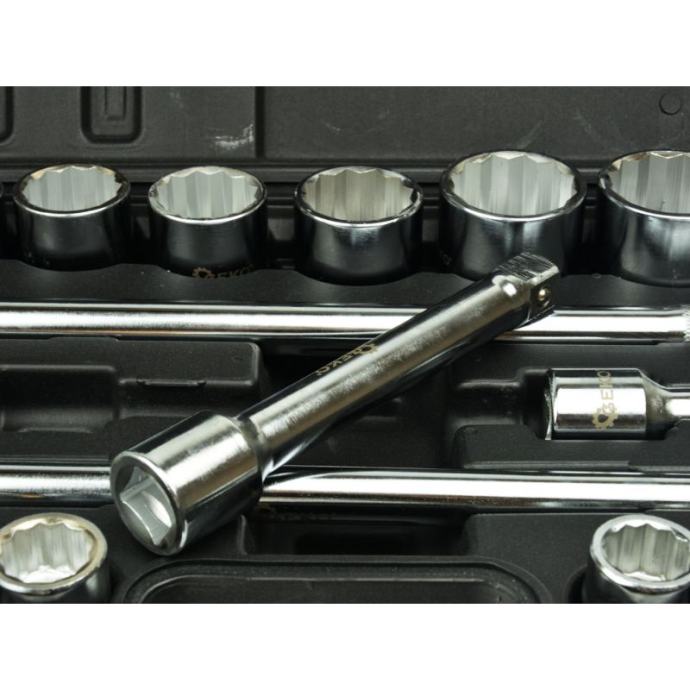 čegrtaljka ima držač pogona koji drži utičnicu i duboko nazubljenu, neklizajuću ručkuzaporni mehanizam sa 43 zubakrom-vanadij čelik za snagu i izdržljivostpolirana kromirana površina za maksimalnu zaštitu od korozijeTehnički podaci:sustav veličina: metričkiraspon veličina: 19 - 50 mmveličina pogona: 3/4 inčadubina nasadnih ključeva: standardnamaterijal: čelik od legure krom-vanadijabroj komada: 21Uključuje: 3/4" nasadni ključevi: 19, 21, 22, 23, 24, 26, 27, 30, 32, 34, 36, 38, 41, 46, 48, 50 mm3/4" reverzibilna ručka s čegrtaljkom3/4" klizna T-ručka100 i 200 mm 3/4" produžne šipke]]>