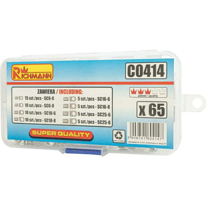 set neizoliranih cijevnih stezaljki 65 kom.set se nalazi u kaseti zatvorenoj kopčama i ušicom za kačenje na kuku, npr.svaka veličina ima zaseban odjeljak u rasutom pakiranju kako bi se spriječilo miješanje tijekom transporta.Set uključuje:SC6-6 - 15 komSC6-8 - 10 komSC10-6 - 10 komSC10-8 - 10 komSC16-6 - 5komSC16-8 - 5komSC25-6 - 5komSC25-8 - 5komTehnički podaci: tip: neizolirani cijevni terminaliveličina: mješovitabroj komada u setu [kom] - 65dimenzije paketa [mm]: 145x70x23težina [g]: 170]]>