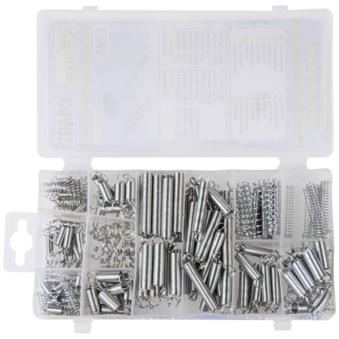 set od 200 opruga u popularnim veličinamaset uključuje opruge istezanja i pritiskaizrađen od opružnog čelikaset uključuje sve najpopularnije veličine opruga koje se koriste u radionicamaset se stavlja u kasetu zatvorenu zasunima s ušicom za vješanje na kuku, npr. u radionicisvaka veličina ima zaseban pretinac u zajedničkom pakiranju, što sprječava miješanje tijekom transportaZatezne opruge7,0x13mm [kom]: 106,0x12 mm [kom]: 105,5 x 27 mm [kom]: 109,5 x 16 mm [kom]: 109,0x18 mm [kom]: 129,0x35 mm [kom]: 85,5 x 38 mm [kom]: 1010,0x19 mm [kom]: 10Produžene opruge:5,0x10mm [kom]: 105,5 x 14 mm [kom]: 106,0x10mm [kom]: 108,0x13 mm [kom]: 87,5 x 17 mm [kom]: 108,5 x 26 mm [kom]: 128,0 x 50 mm [kom]: 127,0 x 55 mm [kom]: 124,0 x 70 mm [kom]: 125,0x34 mm [kom]: 87,0x25 mm [kom]: 108,0x23mm [kom]: 10Tehnički opis:vrsta: kompresijske / produžne oprugečelik: oprugaveličina: mješovitabroj komada u setu [kom.]: 200dimenzije pakiranja [mm]: 205 x 105 x 30težina [g]: 365]]>