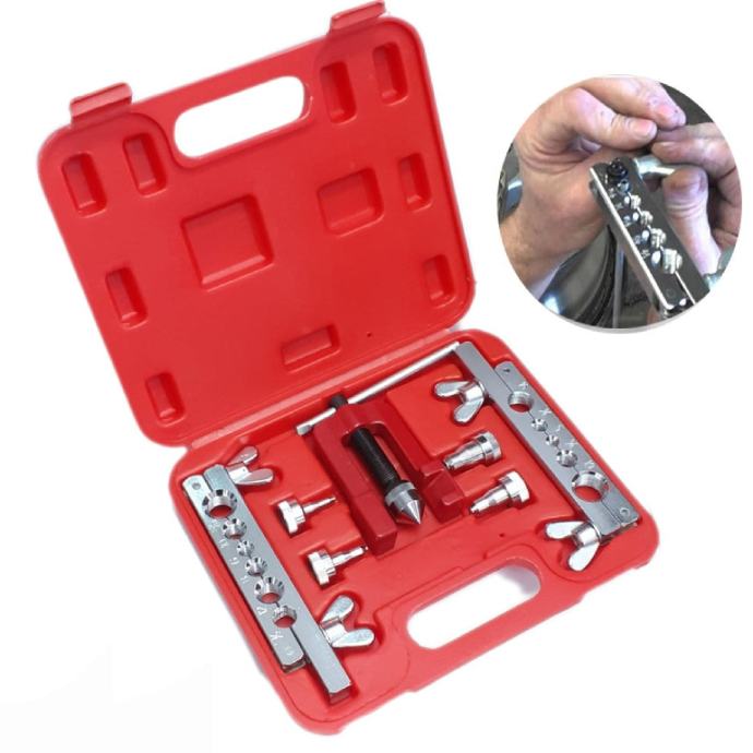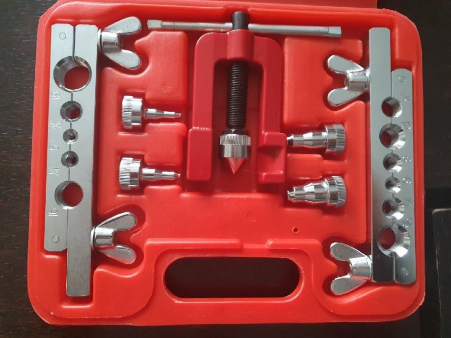 - Ovaj prošireni komplet alata dizajniran je za bakrene cijevi i može se koristiti za širenje mesinganih i aluminijskih cijevi. Naširoko se koristi u kućanskim aparatima kao što su klima uređaji, grijači zraka i popravci hladnjaka.