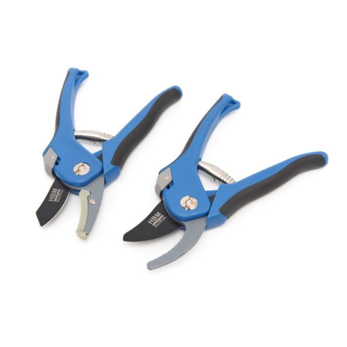 škare za rezidbu opremljene su gumenom protukliznom ručkomset sadrži dvije škare: jednu za biljke i jednu za veće grmlje i drvećeškare za orezivanje su opremljene sigurnosnim uređajem.ovaj HBM set škara od 2 dijela je za hobiste koji vole održavati svoj vrt u redu. Ove škare za rezidbu osiguravaju "čist rez", tako da biljka ili grm gubi što je moguće manje vlage i može se brzo oporaviti. Metalna opruga osigurava da se škare automatski otvore i spremne su za sljedeću granu nakon rezanja. Sivi klizni gumb iza čeljusti je brava koja osigurava da čeljusti ne ostanu otvorene kada spremate škare. Vrlo sigurno, pogotovo ako su u blizini mala djeca.škare s papagajskim kljunom i nazubljenim vrhom prikladne su npr. za nešto veće grane grmlja i grane manjeg drveća. Oblik i nazubljenost osiguravaju dobro prianjanje na granu. Kako biste lakše rezali deblje grane, stavite granu što dalje u usta. Dakle, potrebno vam je manje energije.]]>