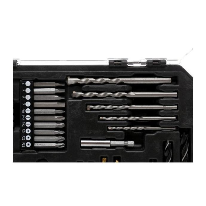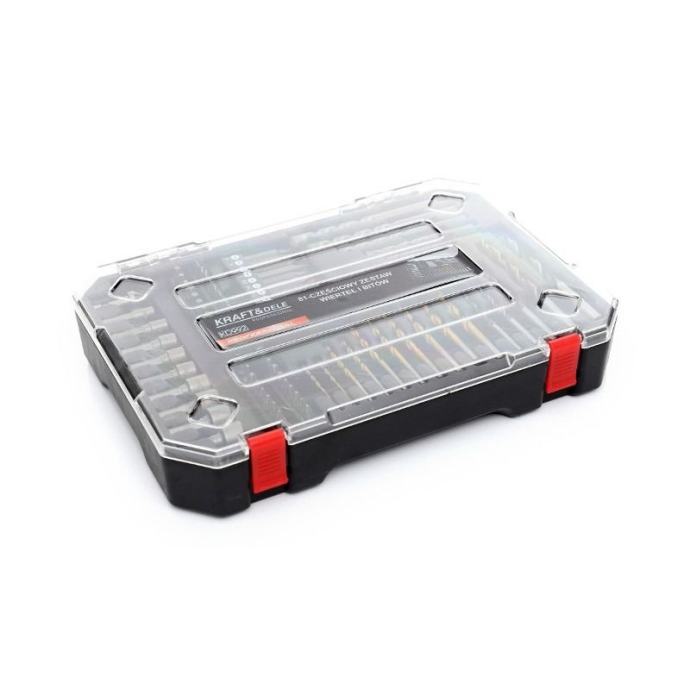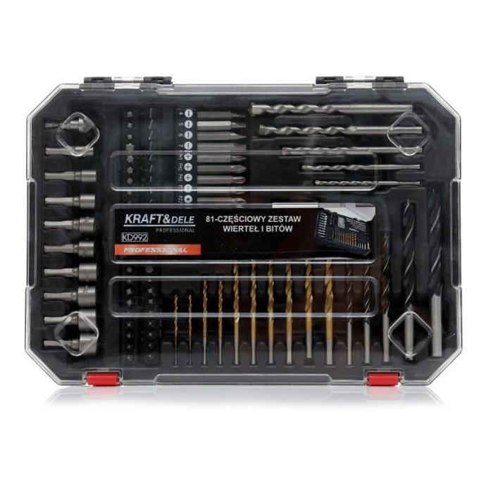 Kraft&Dele KD992 je sveobuhvatan set od 81 komada koji uključuje visokokvalitetna svrdla (HSS, TiN) za metal, beton i drvo, kao i širok raspon bitova, nasadnih ključeva i nastavaka za zavrtanje. Izrađen od izdržljivog krom-vanadij (CrV) čelika i visokobrzinskog čelika (HSS) prema standardu DIN 338, ovaj set pruža pouzdane performanse i dug vijek trajanja u svakodnevnom radu.Komplet dolazi u praktičnom plastičnom koferu s pregledno organiziranim ležištima, što omogućuje jednostavan transport i brzi pristup svakom elementu. Idealan je za kućne radionice, profesionalne servise, građevinare i tehničare.Tehničke karakteristike:Ukupno komada: 81Svrdla za metal (HSS TiN): 2 – 6 mmSvrdla za beton: 4 – 10 mmSvrdla za drvo: 4 – 10 mmBitovi: pločasti, PH, PZ, torx, imbus, kvadratni, dugi bitovi (50 mm)Nasadni ključevi:5 – 13 mmMaterijali: CrV čelik, HSS, TiN premazStandardni prihvat: 1/4″ (šesterokutni)Pakiranje: organiziran plastični koferPrednosti:Sve na jednom mjestu – svrdla i bitovi za razne materijale i primjeneVisoka izdržljivost zahvaljujući CrV čeliku i TiN premazuKompatibilno s većinom odvijača i bušilicaPraktičan kofer za uredno i sigurno spremanjePogodno za hobi i profesionalnu upotrebuNamjena: Za bušenje i zavrtanje u metal, drvo i beton u servisima, garažama, građevini i kućnoj radionici. Idealan za električare, mehaničare, instalatere i majstore svih profila.]]>