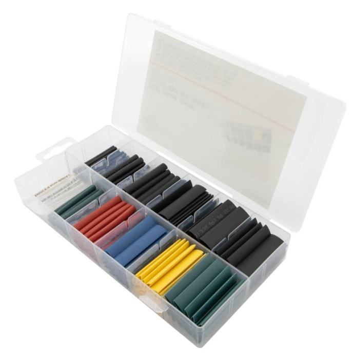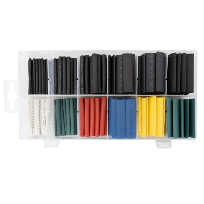set termoskupljajućih cijevi od 180 dijelova, uključujući različite veličine od 2 mm do 9 mm u više boja pruža sigurnu izolaciju i zaštitu za električne spojeveKljučne značajke:komplet termoskupljajućih cijevi od 180 dijelova – pokriva veličine od 2 mm do 9 mmpoliolefinski materijal otporan na vatru – osigurava snažnu izolaciju i izdržljivostrazne boje za jednostavnu identifikaciju – pomaže organizirati projekte ožičenjaizvrsna električna zaštita – sprječava vlagu, koroziju i abrazijusvestrana uporaba – idealno za automobilske, industrijske i električne radove za kućnu radinostorganizirano skladištenje – dolazi u kutiji plastična kutija s pretincima Tehnički podaci:Veličina (mm) Boja Količina2 x 45 mmbijela15 kom2 x 45 mmcrna15 kom3,5 x 45 mmzelena15 kom3,5 x 45 mmcrna15 kom5 x 45 mmcrvena15 kom5 x 45 mmcrna15 kom7 x 45 mmplava15 kom7 x 45 mmcrna15 kom8 x 45 mmzelena15 kom8 x 45 mmcrna15 kom9 x 45 mmžuta 15 kom9 x 45 mmcrna15 kom]]>