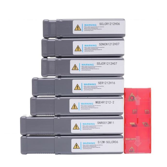 u setu se nalazi 28 komada tokarskih noževa koji omogućavaju precizno glodanje i skidanje raznih površina, što osigurava svestranost i učinkovitost tijekom radaSet uključuje:7x 12mm sklopivi tokarski noževi7x C6 karbidni umetci presvučeni TiN-om7x vijaka7x ključVeličine noževa:SDJCR1212H07 – 100 MM – 12 MMSDNCN1212H07 – 100 MM – 12 MMSCLCR1212H06 – 100 MM – 12 MMMGEHR1212-2– 100MM – 12MMSER1212H16– 100MM – 12MMSNR0012M11 – 150 MM – 12 MMS12M-SCLCR06 – 150 MM – 12 MM]]>