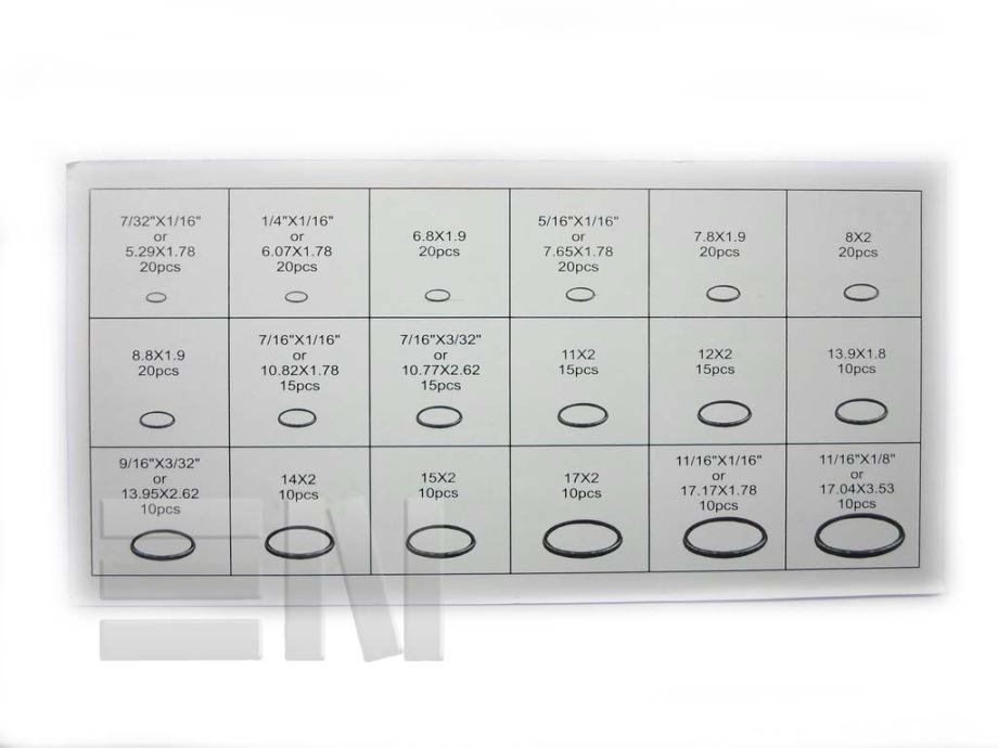 10pc 9/16×3/32in. / 10pc 14x2mm / 10pc 15x2mm / 10pc 17x2mm