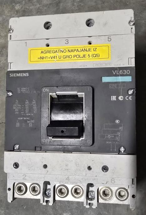 Prodajem industrijski automatski prekidač Siemens VL630, skidano iz ispravnog sustava.