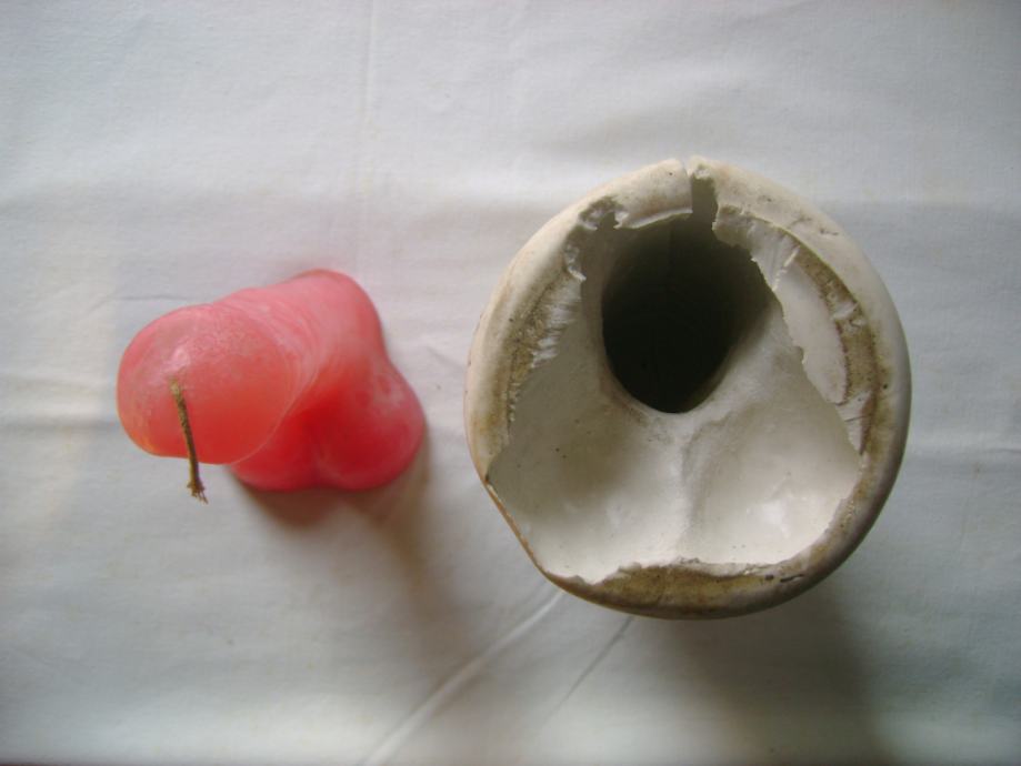 Silikonski kalup za svijeću, ostatak od proizvodnje, korišten, vrlo dobro očuvan + svijeća visine cca 16 cm - u jednom trgovačkom lancu su ih prodavali pod nazivom Tvrtko - stanje je vidljivo na slikama.