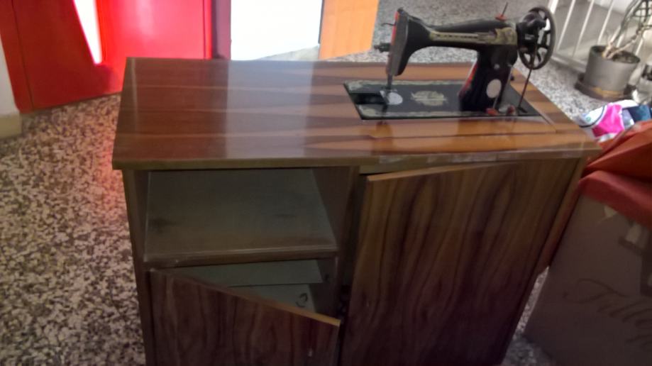 Singer šivača mašina iz 1970, na nožni pogon, svi dijelovi originalni i u ispravnom stanju, MIRNA model, vitrina ima stakla koja nisu na slici i može biti kao ukras u dnevnom boravku.