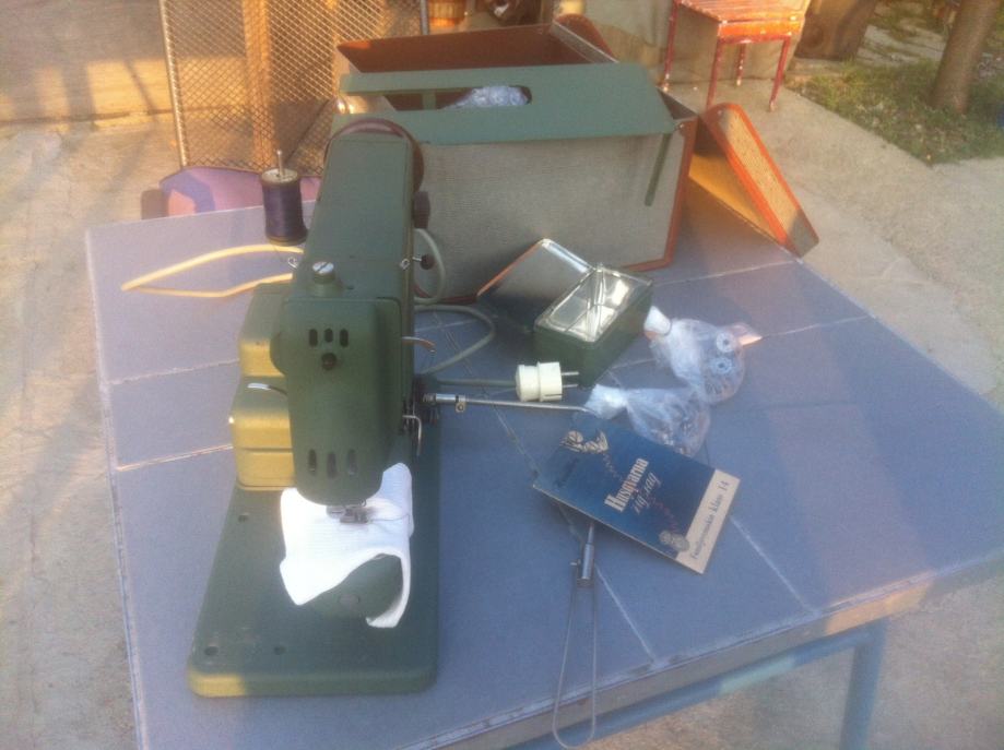 Šivaći stroj Huskvarna na električni pogon iz 1955 god .Potpuno ispravan sa svim dodacima za šivanje upustvo ,u orginal putnom Kovčegu . Prodajem za 380 € ili mijenjam. Za alu felge 15" VW.