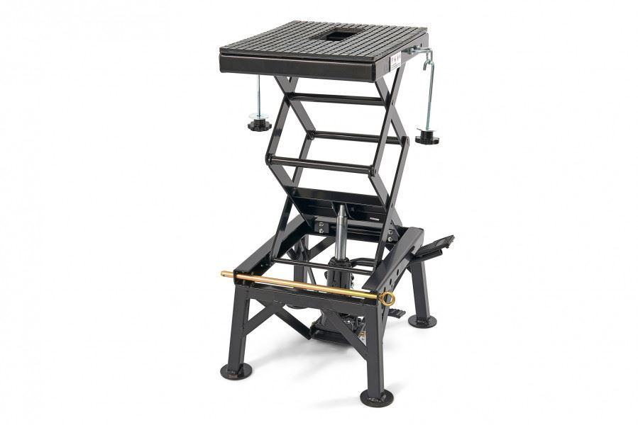 škarasta dizalica za motocikle do 135 kgpodesiva po visinitvrda gumena podlogapedala za podizanje i spuštanjestabilna čelična konstrukcijapogodna za zimovanje motociklaTehnički podaci: nosivost: 135 kgminimalna visina podizanja: 340 mmmaksimalna visina podizanja: 900 mmstol za podizanje: 410 x 355 mmudubljenje: 75 x 180 mmdimenzije (d x š x v): 460 x 420 x 340 - 900 mm]]>
