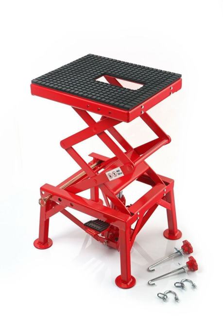 crvene boješkarasta dizalica za motocikle do 135 kgpodesiva po visinitvrda gumena podlogapedala za podizanje i spuštanjestabilna čelična konstrukcijapogodna za zimovanje motociklaTehnički podaci: nosivost: 135 kgminimalna visina podizanja: 340 mmmaksimalna visina podizanja: 900 mmstol za podizanje: 410 x 355 mmudubljenje: 75 x 180 mmdimenzije (d x š x v): 460 x 420 x 340 - 900 mm]]>