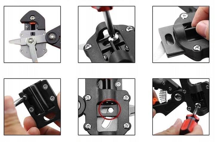 Udobnost rada pruža nekoliko vrlo oštrih noževa + posebno pripremljena matrica za cijepljenje.