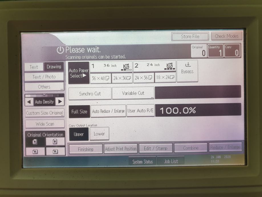 Do sada je korišten isključivo za skeniranje i kopiranje nacrta, stroj podržava formate do 914mm širine i 15m dužine