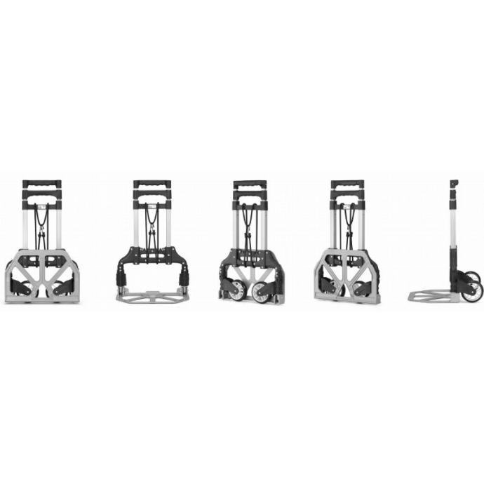 sklopiva aluminijska transportna kolica viša savršen su izbor za jednostavan i siguran prijevoz različitih vrsta tereta u kućanstvu, uredu ili radionicizahvaljujući laganoj, ali izdržljivoj konstrukciji, omogućuju nosivost do 70 kg, a istovremeno se jednostavno sklapaju i zauzimaju minimalno prostorateleskopska ručka s tri stupnja podešavanja visine omogućuje prilagodbu korisniku, dok gumeni, puni kotači promjera 120 mm osiguravaju tihu i stabilnu vožnju po različitim podlogama. platforma dimenzija 39 x 29 cm izrađena je od jednog lijeva aluminija, što jamči čvrstoću i dugotrajnostgumirana površina platforme sprječava klizanje tereta, a uz kolica dolazi i elastični remen za dodatno osiguranje pri transportu. zahvaljujući svom dizajnu, ova kolica se mogu jednostavno sklopiti na samo nekoliko centimetara debljine, što ih čini idealnima za pohranu u automobilu, ormaru ili radioniciTehnički podacitip kolica: skladišna / transportnamaksimalna nosivost: 70 kgmaterijal konstrukcije: aluminij (ne hrđa)dimenzije platforme: 39 x 29 cm promjer kotača: 120 mmtip kotača: gumeni, punipodesiva ručka: 3 razine visine (teleskopska)dimenzije sklopljeno: 43 x 6 x 70 cmdimenzije rasklopljeno: 41 x 39 x 100 cmboja: crna / aluminij težina: 7 kgdodatno: elastični remen za osiguranje tereta, gumirana protuklizna površina platformeprimjena: kućanstvo, ured, skladište, radionica, prijevoz manjih tereta]]>