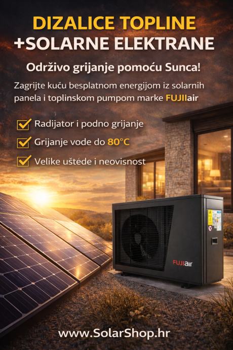 Uz kupnju dizalice topline ostvarujete dodatni popust na solarnu elektranu od 20% tj cijena 10kW elektrane “ključ u ruke” je 7777€