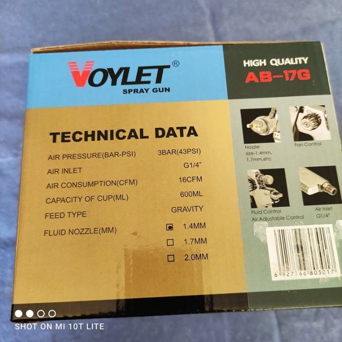 Prodajem novu nekorištenu profesionalnu HVLP šprice-pištolj za lakiranje VOYLET AB-17G, sa diznom 1,4 mm.