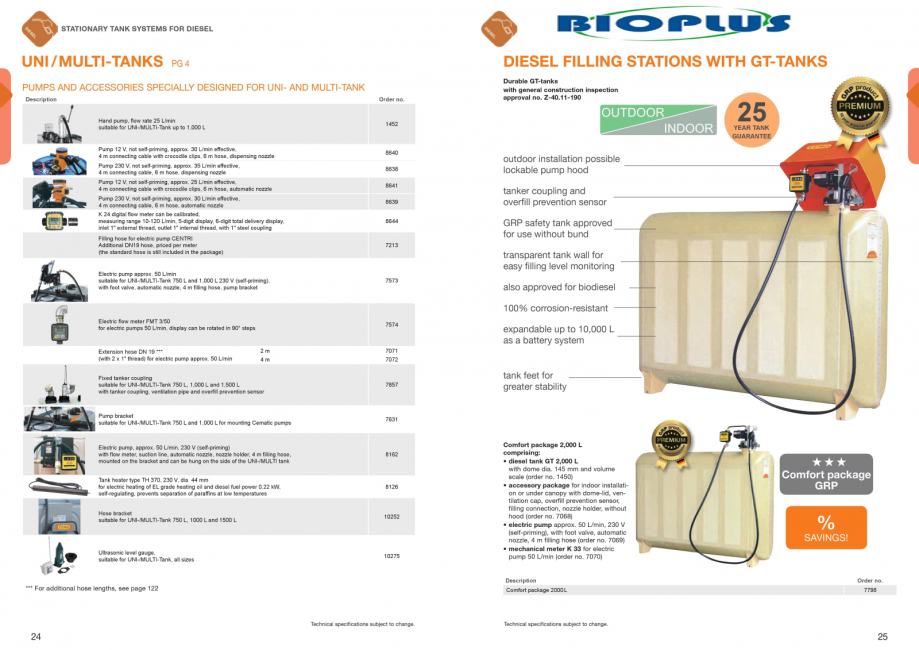 Dostupna raznovrsna, visokokvalitetna oprema, kao što je: crijeva za istakanje, automatski pipci, digitalni mjerači protoka, pokazivači razine medija u spremniku, više vrsta pumpi, zaštitni poklopci, elektronski sustavi za monitoring i kontrolu korištenja sa višestrukim korisnicima, diesel dozatori, razni stalci, ormari, tankvane, zaštite...