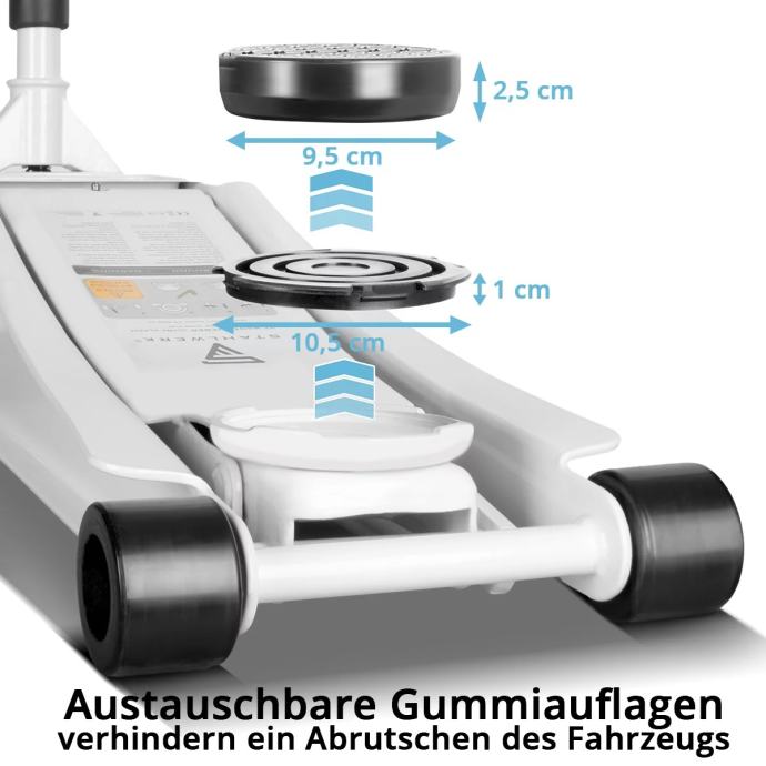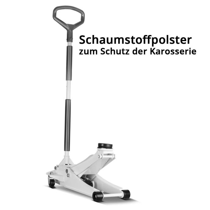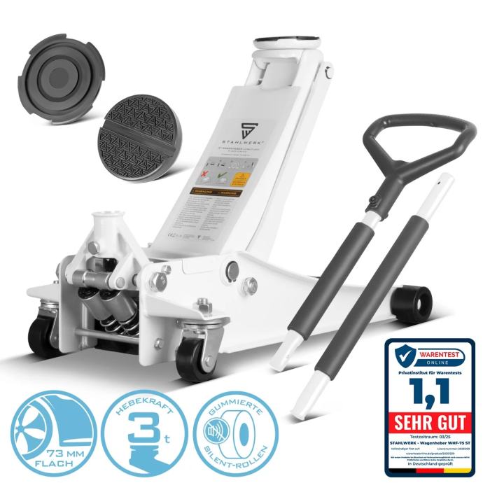 STAHLWERK WHW-73 ST dizalica za automobile nosivosti 3 t, gumenim valjcima, dvostruko djelujućim klipom i rasponom podizanja 73-500 mm | ekstra ravna kolica za dizanje | hidraulična dizalica za automobile | bijela dizalica za automobile