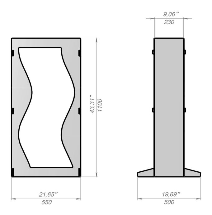Dimenzije: 55 × 50 × 110 cmMaterijal: čvrsto željezo, debljina 4 mmBoja: antracitDizajn: valovite linije, moderan i minimalističkiNamjena: praktična i dekorativna pohrana ogrjevnog drva